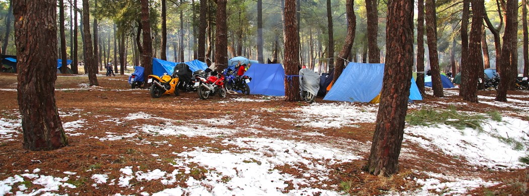 Un edición auténticamente invernal, en la que en un pinar que aún conservaba restos de la gran nevada del fin de semana anterior, la nieve hizo de nuevo su aparición en la jornada del sábado, lo que impidió que muchos moteros llegaran a la cita de Cantalejo, restando algo el número final de asistentes a la concentración.